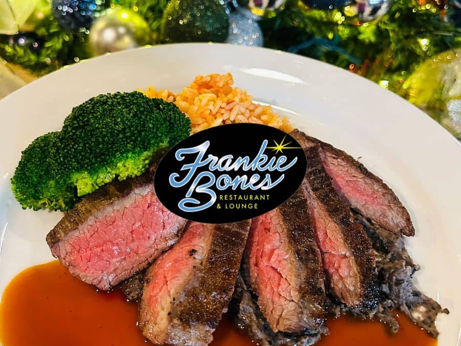 At Frankie Bones, diners get a full chophouse experience wrapped in vintage glamour, complete with premium cuts like their signature Coffee Marinated Ribeye and tender Filet Mignon. It’s the place to go when you want a classic steak dinner served with elegance.