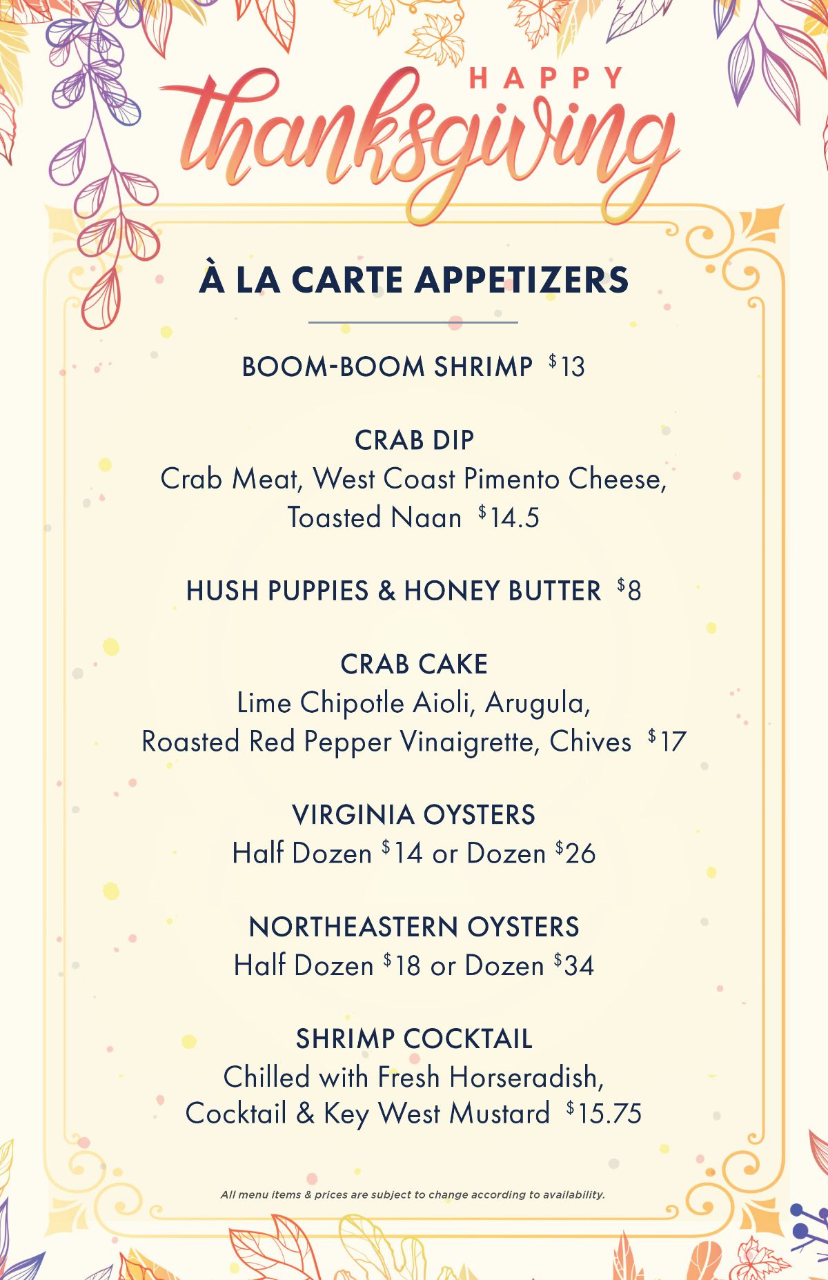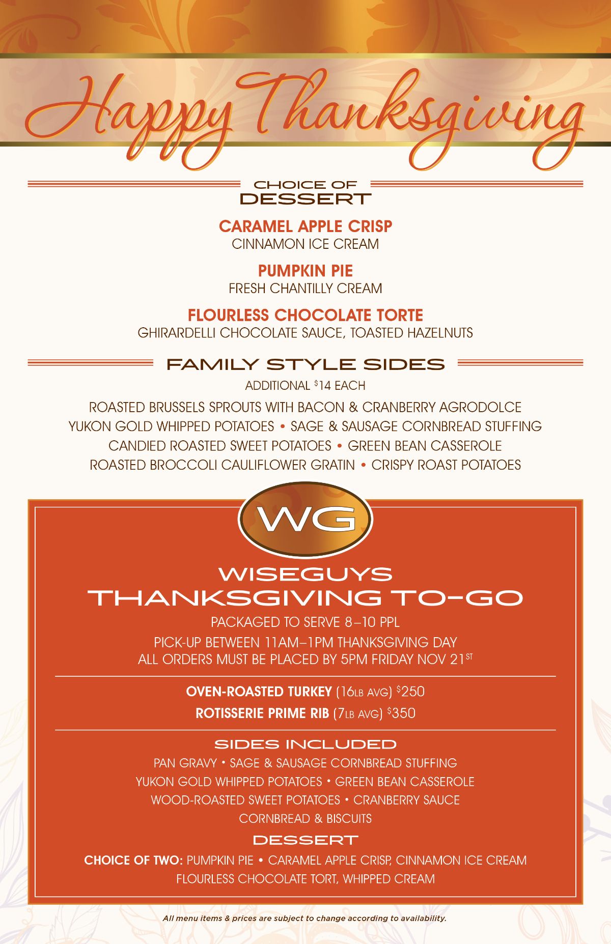 • Thanksgiving Menus